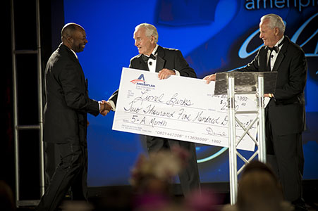 Ameriplan corporation CEOs handing out over-sized checks to employees at corporate gala in Texas